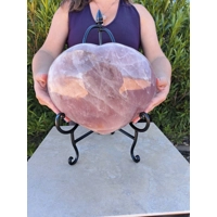 18.72 Lb Huge Rose Quartz Heart with Metal Stand. 10.4 Inch Polished Rose Quartz Crystal Puffy Heart